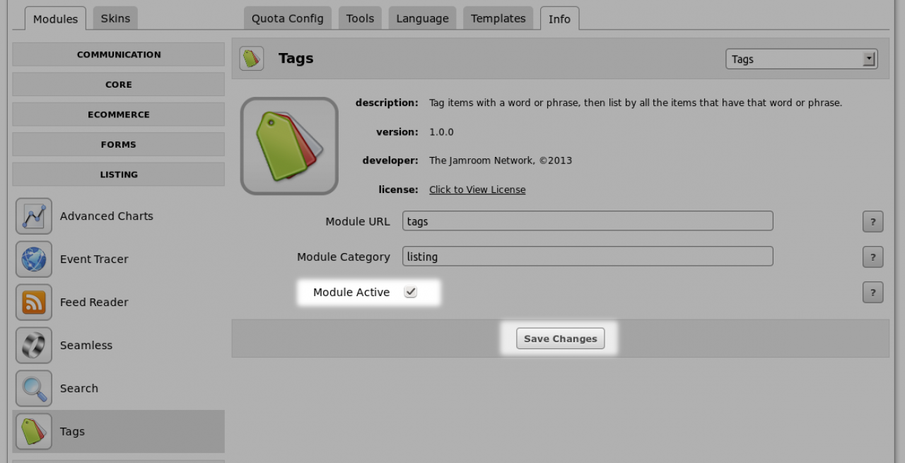 Since all of the Jamroom released skins are already setup to make jrTags work anyone using one of these skins can skip step 1.