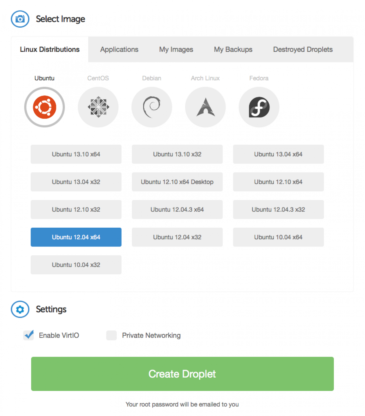 We’re going to be using Ubuntu 12.04 for this guide - 12.04 is Ubuntu’s most recent “LTS” (Long Term Support) release - I’m a big fan of the LTS releases, and 12.04 has worked well. We’re going to use the 64bit version of Ubuntu, which will allow our VPS to use more than 4Gigs of RAM or so if we decide to upgrade to a larger VPS plan in the future.