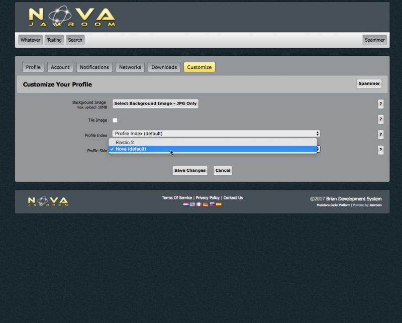 If I set "Elastic 2" as the active skin and "Nova" as the active profile skin and "Elastic 2" or "Nova" as the active admin skin - in this case "Elastic 2" does not displays in a profile - "Nova" displays only, despite any "customize settings" in a profile.