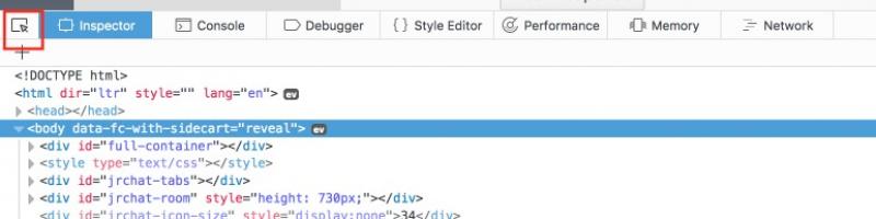 4) Click on the website what it is you want to inspect - i.e. a button, chat pane, etc. You'll see as you move your mouse around it "highlights" the sections of the code source.