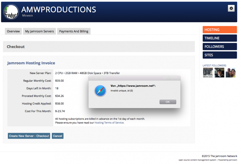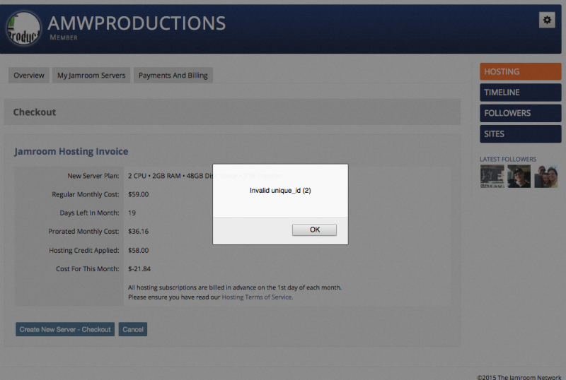 Error on Hosting check out