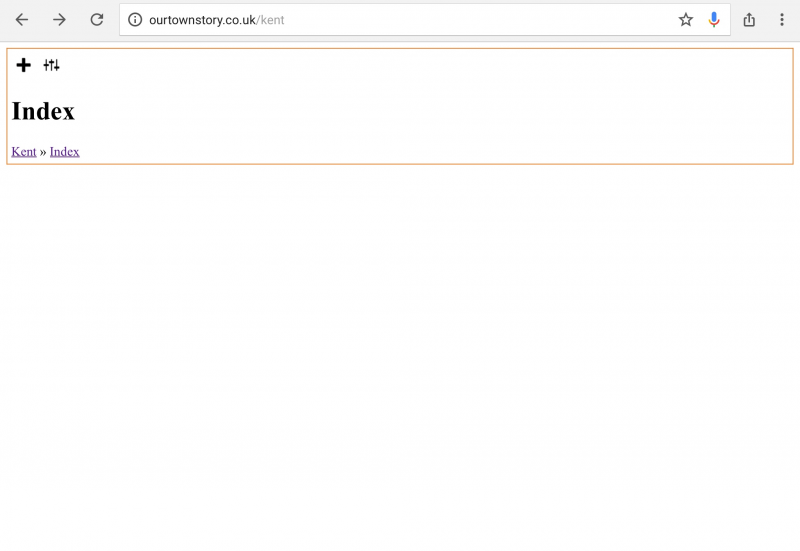 The page in question is http://www.ourtownstory.co.uk/kent - www.ourtownstory.co.uk/dorset or with any other county after the / seem to work fine, and as I said, all use the same template. Using the Inspector shows a very limited amount of html coming in - confess to being a little confused....