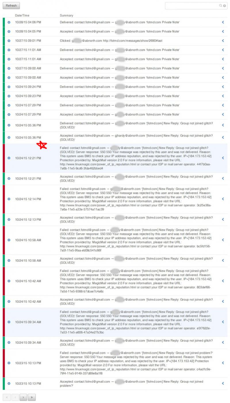 A couple days later i looked in the email log again, and it was very obvious that George had indeed contacted his provider, in fact it showed the exact hour that his provider stopped blocking his notifications from my site...see this awesome screenshot I've attached here below. I wrote George again and showed him how he would now be getting all those notifications and private Messages that had been getting blocked all this time. Awesome! Apparently he had been missing out on many site notifications per week, including lots of private messages failing to reach him...yikes! It feels very satisfying to now be able to investigate in depth and resolve this kind of problem for my members.