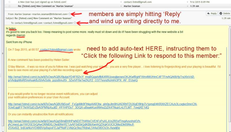 Lately, I'm getting misdirected emails from members who 'think' they are responding to other member's comments on their stuff. But they get a notification that someone left a nice comment, and they simply hit "Reply", saying Thanks and other personal stuff- and it gets sent to me instead at my site email that sent the notification. The problem is they are ignoring the rather intimidatingly long Link that would take them to where they SHOULD be responding.