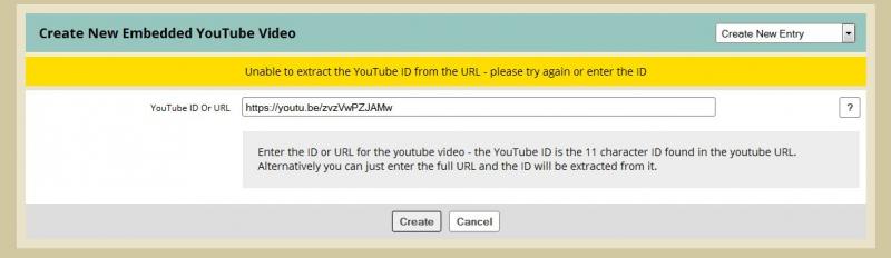 First issue: the add YT will not accept the basic "Share this" code that YT handily supplies (as in for example: https://youtu.be/zvzVwPZJAMw)