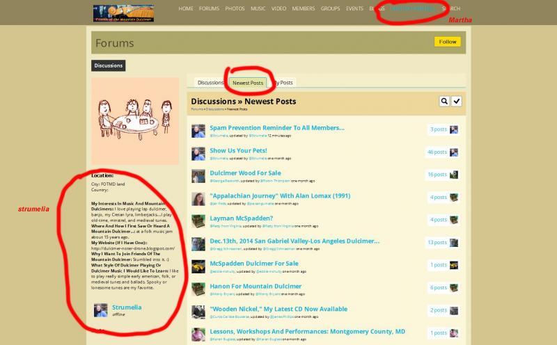 But when going to the tabs for "Newest Posts" or "My Posts"....I suddenly get Strumelia's profile info all on the left side, with my forum profile user "Forums" avatar...see screenshots.
