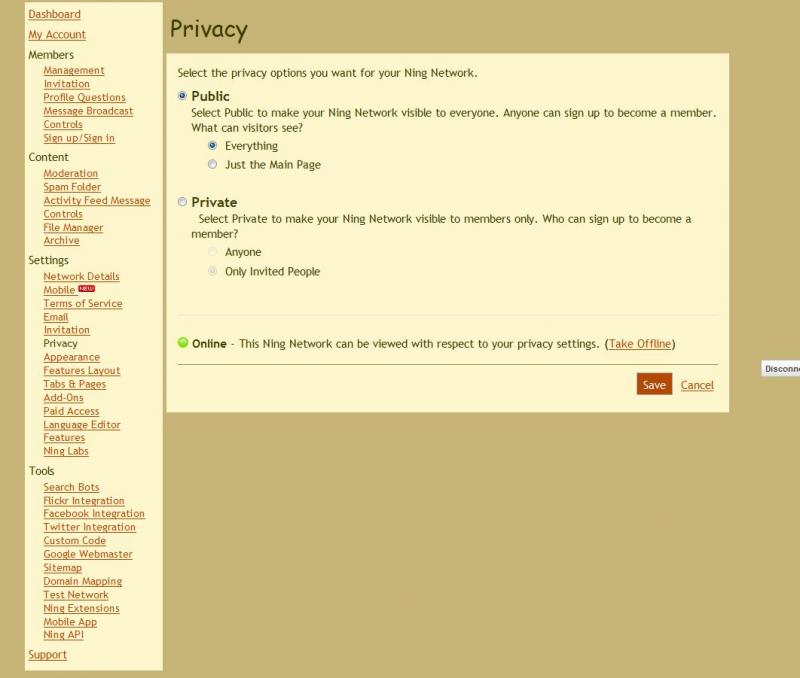 I also have an issue with the main page modules only showing UPLOADED videos (no youtubes or vimeos) and only UPLOADED music (no soundlcloud clips). This arrangement will encourage people to load all their videos and MP3s right onto my site instead of embedding them through YT and SC, and over years that will lead to a huge amount of content on my server. I am willing to bet that 90% of all ning network videos are youtube embedded. Also, I envision every week people asking me "I posted a youtube video yesterday but I don't see it in the video section..where'd it go?" This issue however is really a separate discussion that I intend to raise later, in a SEPARATE thread. (sorry!)