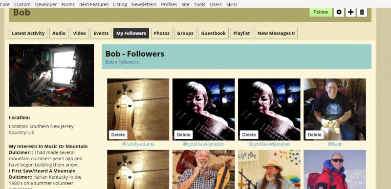 I see it occurring in my followers page of my profile "Forums" which i use to house the site forums... however it's NOT occurring in my master admin Strumelia profile.