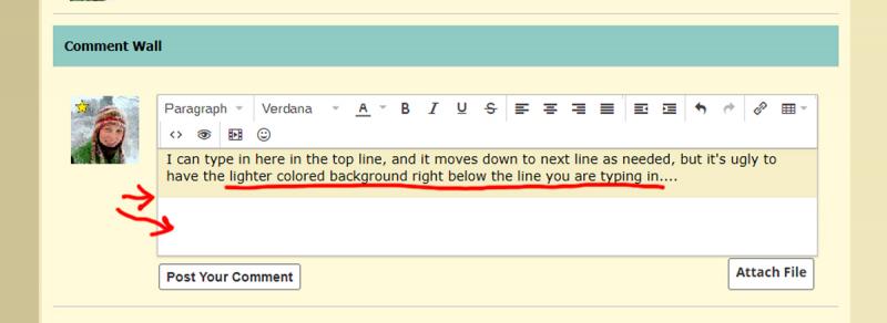 First, halfway through the updates, I received a member complaint about not seeing the tinymce Text Editor at all available for Comments and Posts. But once all were updated and integ check and reset cache was done, I re-started my computer just to be sure and now i see this annoying whitish area always below the line where one is typing in all Comment and Forum post editor boxes.. in Groups, in Forums, in Comments on photos, videos, etc.