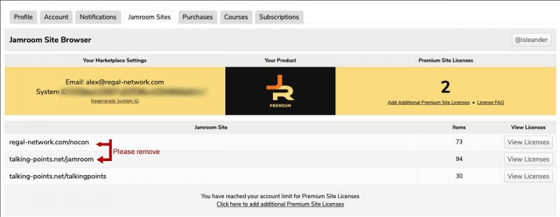 I need to release the licences from those older sites so that I can use it on this new site (talking-points.net/talkingpoints).