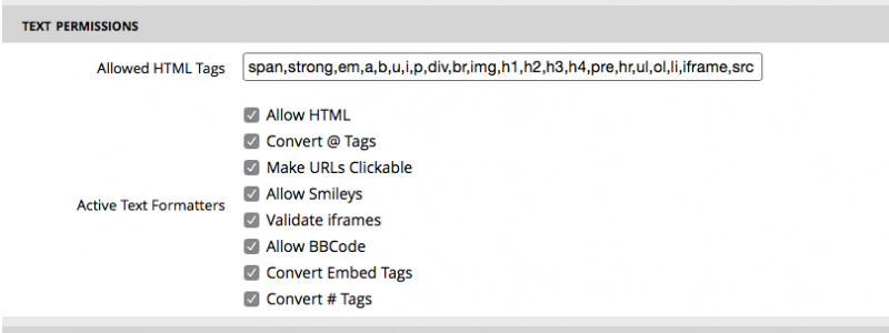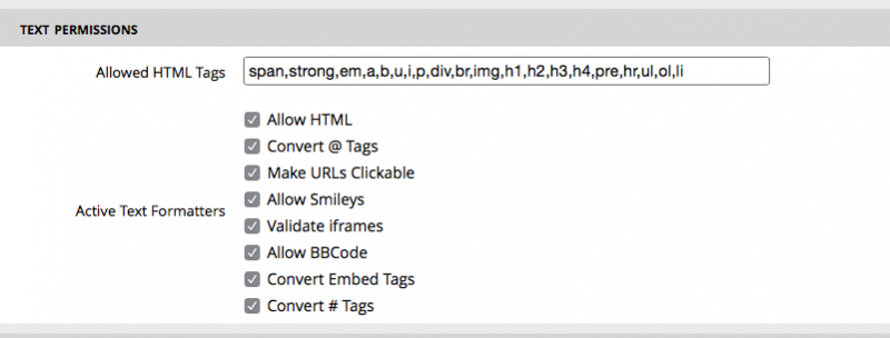 The text permissions that I added are saved in the general user quota, but not the Admin quota.