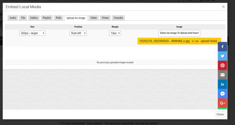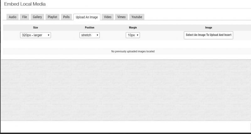 Used to be once i set the image at 320 px Position float left Margin 10- it was cached for additional images....for some reason the position is no longer being cached and is now going to a default of STRETCH instead of "float left"