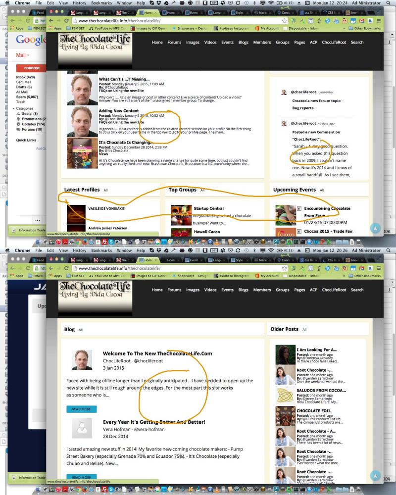 There are two different image sizes and three different text formats for Latest Profiles, Top Groups, and Upcoming events. I would like there to be one image size and the text formatting needs to be consistent.
