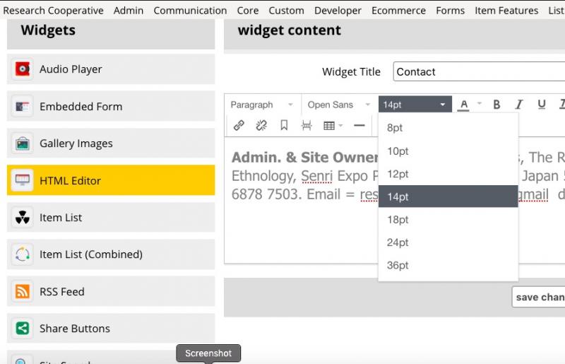 (c) what the default font size and style settings should be for the entire site, inside all text boxes, whether an editor is provided or not.