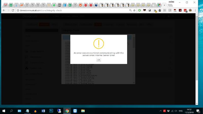 After getting MySQL services up and running again, I tried running the Integrity check again.