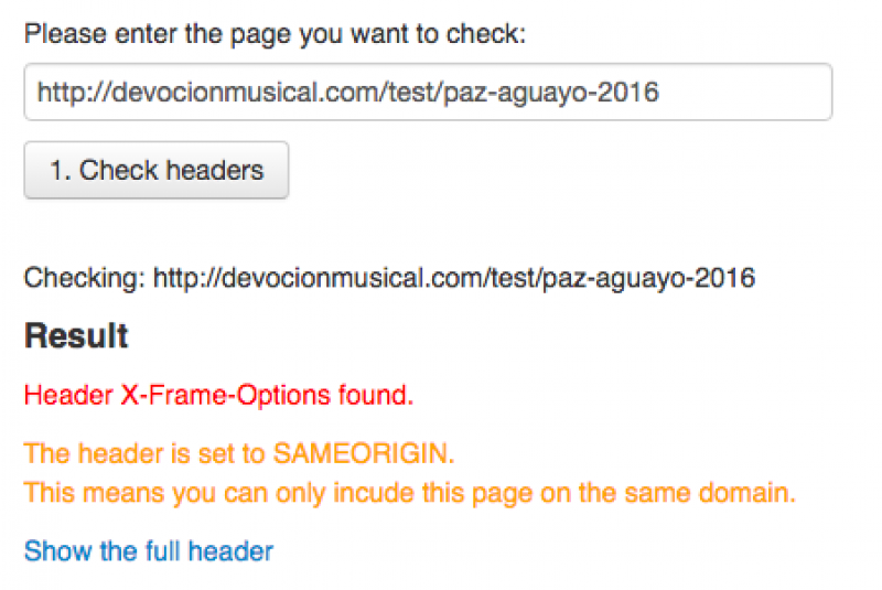 But it says: The header is set to SAMEORIGIN. This means you can only incude this page on the same domain.