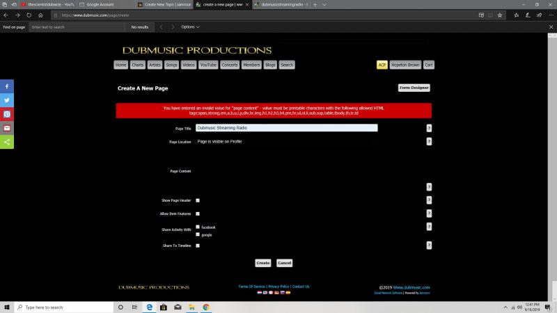 You have entered an invalid value for "page content" - value must be printable characters with the following allowed HTML tags:span,strong,em,a,b,u,i,p,div,br,img,h1,h2,h3,h4,pre,hr,ul,ol,li,sub,sup,table,tbody,th,tr,td