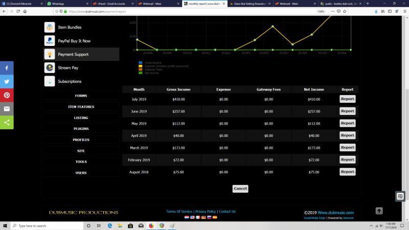 month gross income expense gateway fees net income report