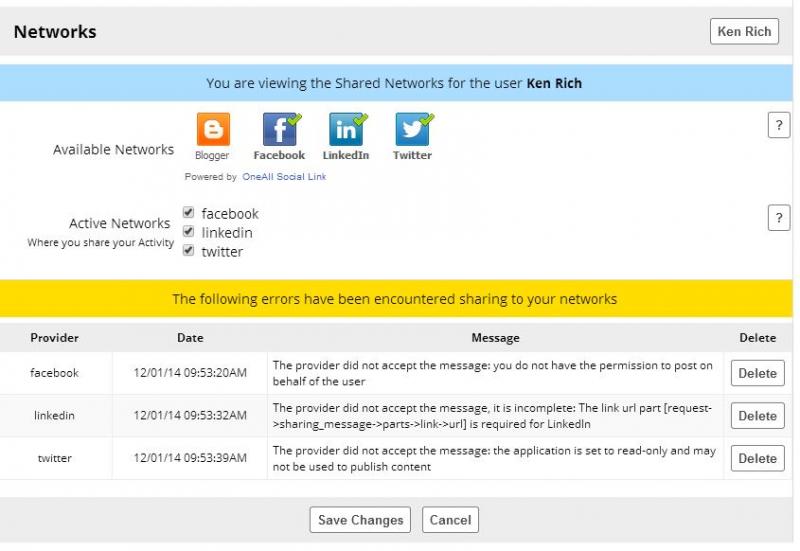 For sharing, more permissions must be added to the EXISTING app. Therefore, one has to IGNORE the instructions at OneAll about creating an app (not meant for Jamroom) and simply modify the permissions on the one ALREADY CREATED by the jrOneAll module.