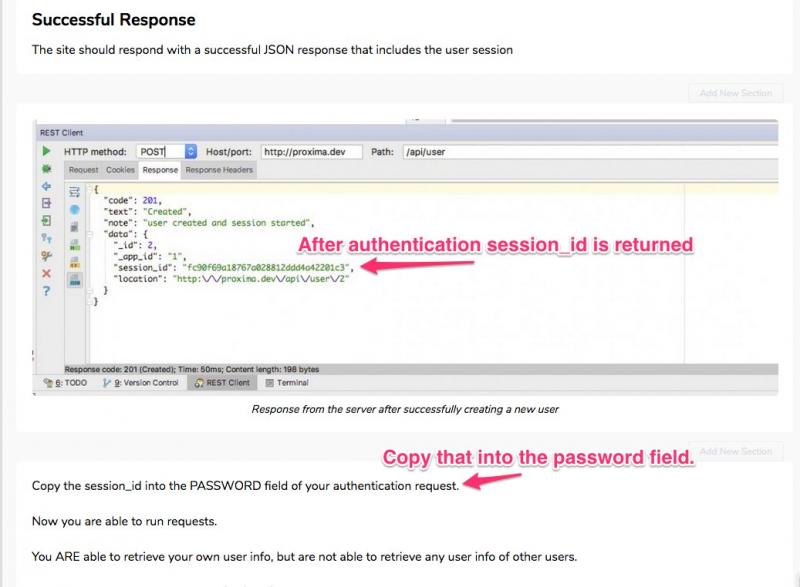 After you authenticate, copy the session_id into the password field.