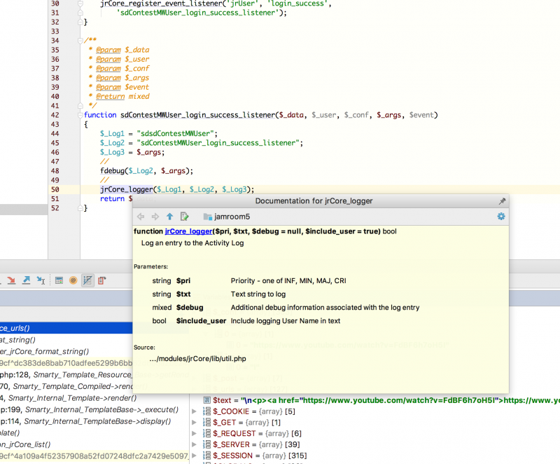 jrCore_logger('inf', 'fired the login success listener, it worked');