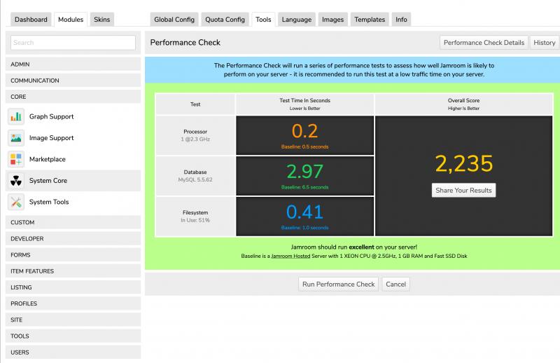 Here on jamroom.net we have 2 main quotas, they are 'regular' and 'developer'. This is what a regular users profile looks like: