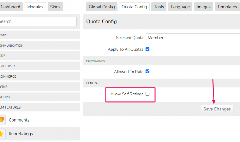 @paul @brian We're still trying to solve basic 'standard' workings of the Elastic skin 2. Example in the jpg. The relevant boxes are clicked, then save changes then integrity check... at least 5 times. It still doesn't work. I do not want to allow self ratings. I'm coming back to what we've always asked, that what we click, which is what's offered to work. When we are not knowledgeable of why and can't think of variable possibilities of why, unfortunately we write to you. We do feel guilty. We have on occasions had the monthly support paid offer but we still couldn't get the systems to do what is expected.