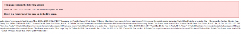 ps when i open audio rss feed am getting this error I don't know how to fix it or start, I believe is the latin character within the xml but not sure, see attachment