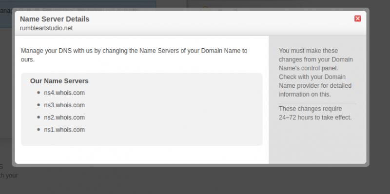The new site we're building can be got to at rumbleartstudionet.jamroomhosting.com, that is NOT listed on my dashboard as one of my sites, and that is the site you should be able to get to from the url I bought from Whois, rumbleartstudio.net.