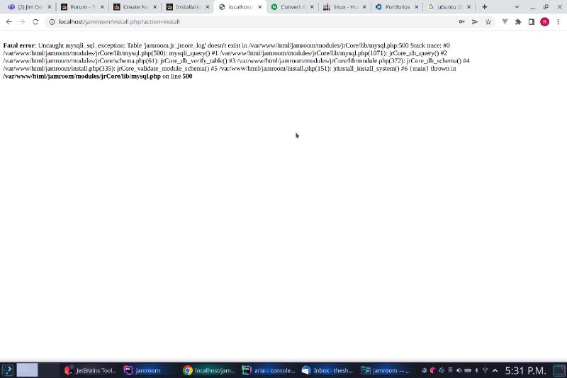Jamroom Installation Error (No tables being created)
