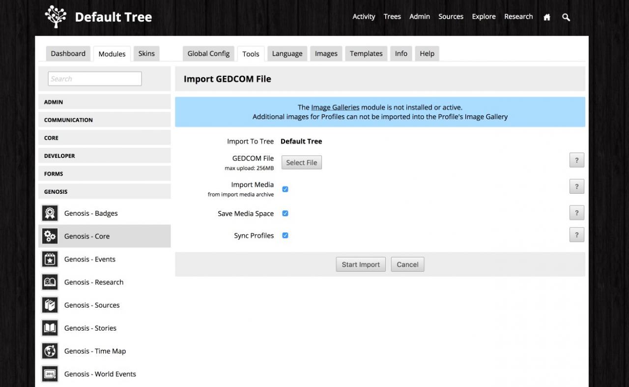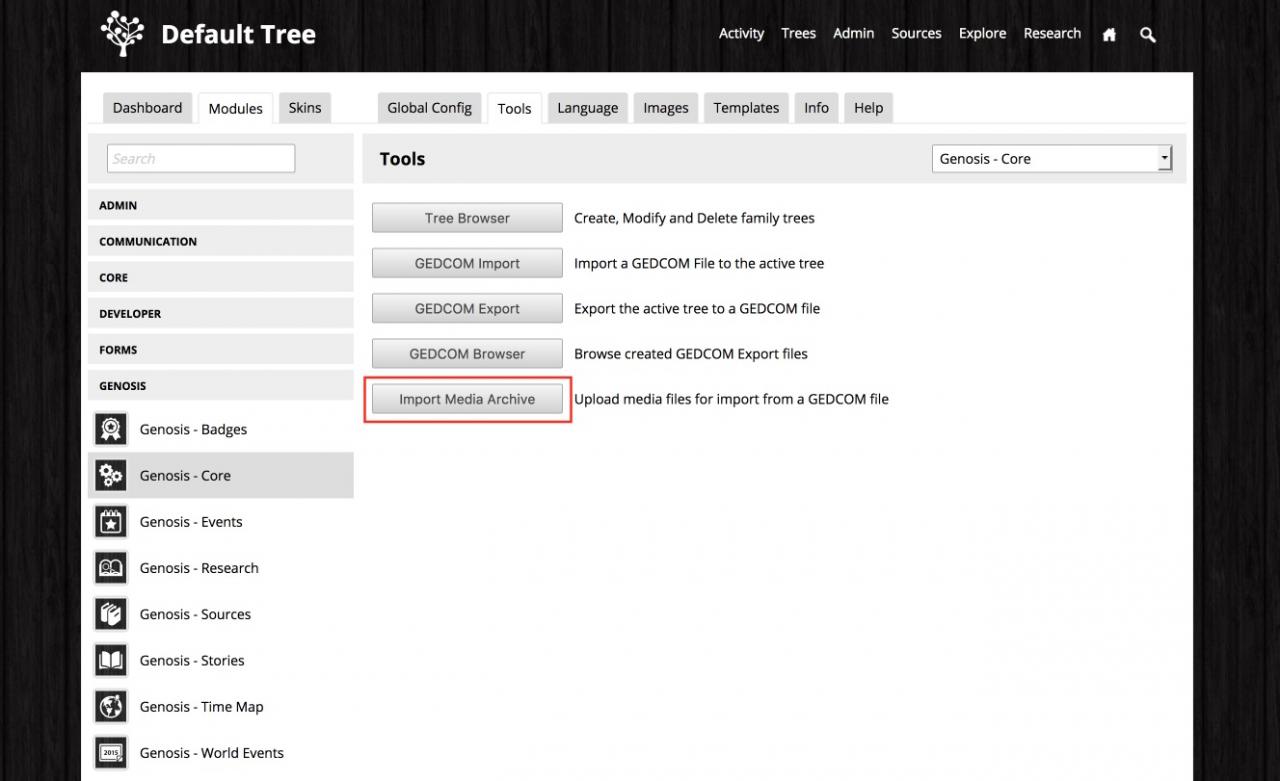The first step is to get all your Media Files uploaded to your Genosis site - this ensures when Genosis is importing a GEDCOM file it can find the linked media files and properly add them to your site.
