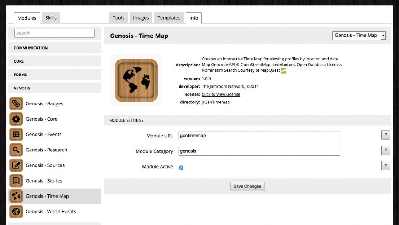 The Genosis Time Map module adds an exciting new way to visualize and browse your ancestors by adding a world map where you can view the birth events of ancestors in your tree. By moving the "time slider" you can visualize the movement of births, letting you see how your ancestors migrated over time.