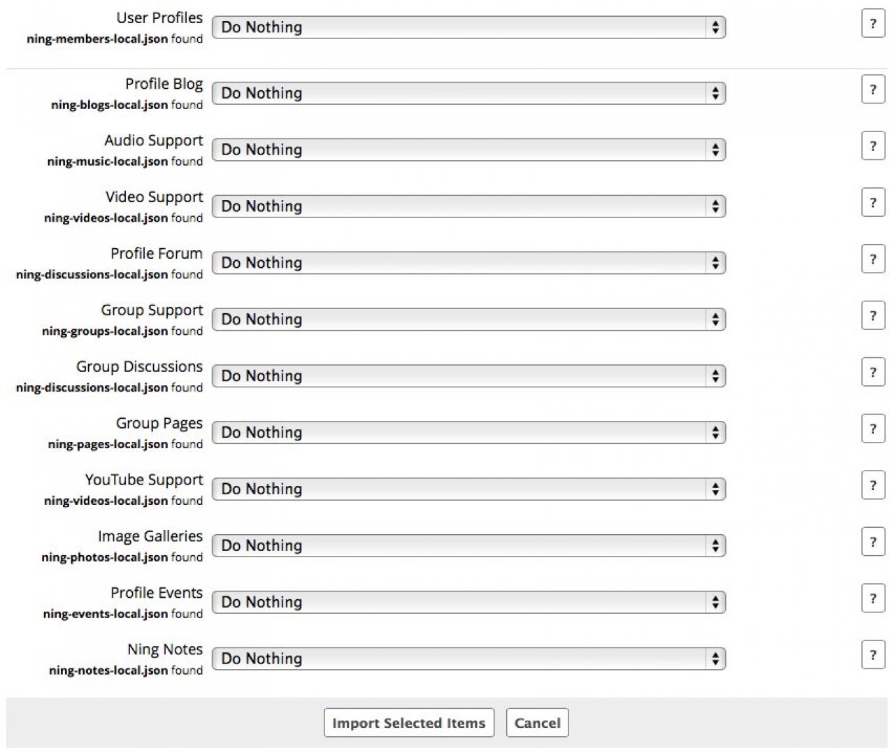 You want to assess what is in your Ning archive and decide which of the above Jamroom modules you need to install.