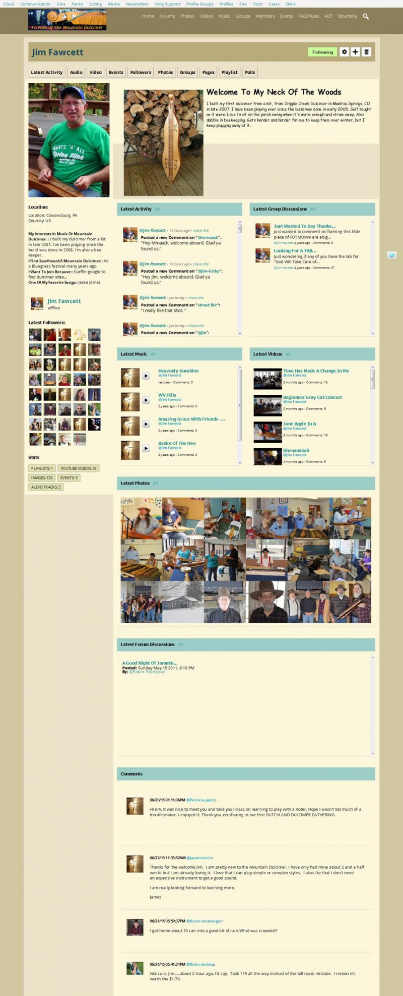 My site for players of the Appalachian Dulcimer (a traditional American musical instrument) was started on Ning in 2009. Over six years my site grew in members numbers and scope, yet Ning did not grow along with it, and in fact had intentionally turned its back on its customers. Even their supposed 'upgrade' platform was abandoned before it was completed. The writing was on the wall- I was facing a dead end for my site, and knew I'd be letting down all my members if I did nothing. I looked into several alternative platforms, and even built a test network on one of them, but nothing seemed to be the right fit for my community.