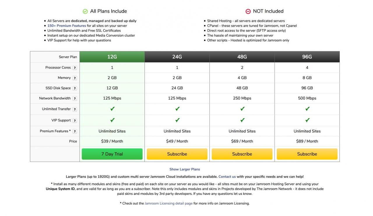 If your in the situation where your site is getting large, say over 500GB in size, but is not particularly busy, then you might not need so much processing power, but do need a lot of storage.