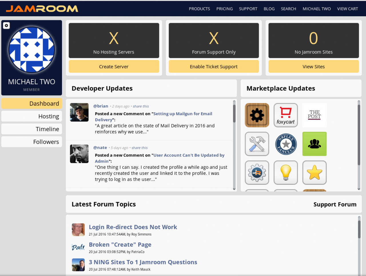 Hosting - If you want to use Jamroom Hosting, this is where you would create a server and edit and add to existing servers that you own.
