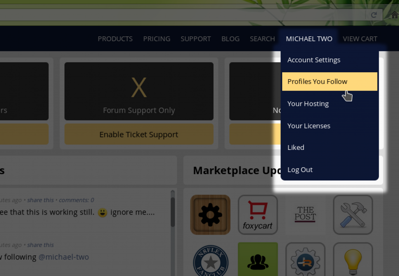Timeline - This is where you write status updates if you have something to say to users who follow you. You can navigate around the site and click the FOLLOW button on any profiles you think you might be interested in receiving status updates from. A status update may be updates to modules, new modules added, or any message that that profile chooses to send out. You can see an example of