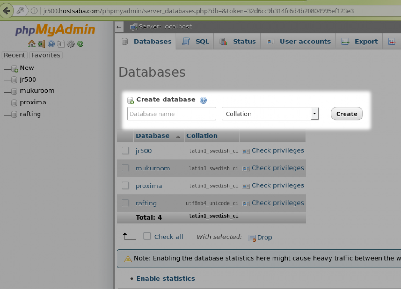 Screenshot of PhpMyadmin create database screen