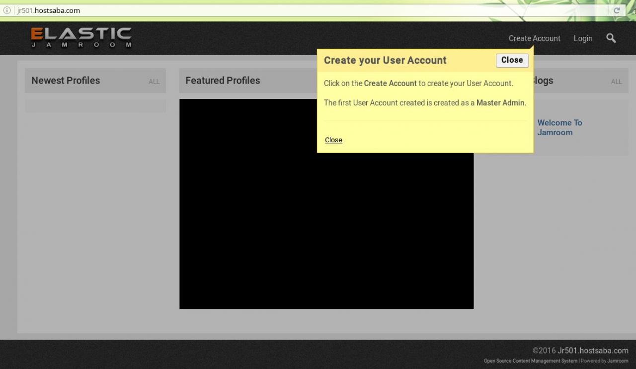 Screenshot of the first look at newly installed Jamroom site