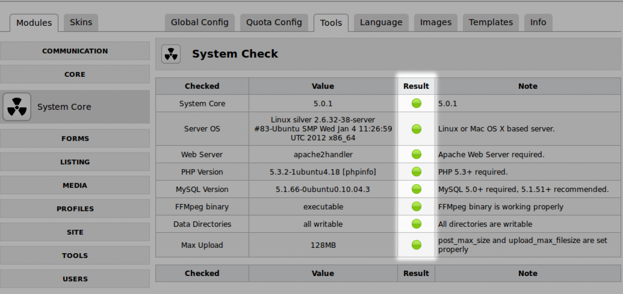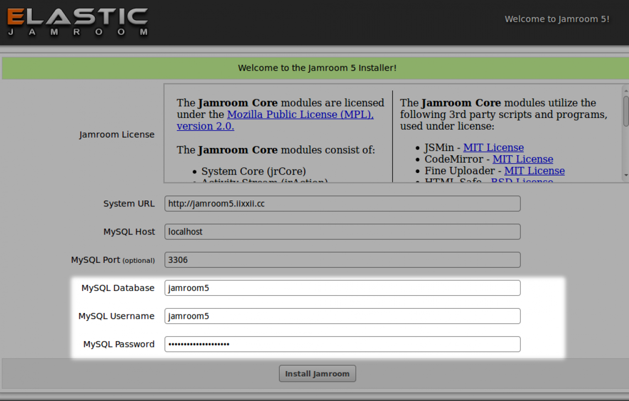 The following PHP extensions are required: