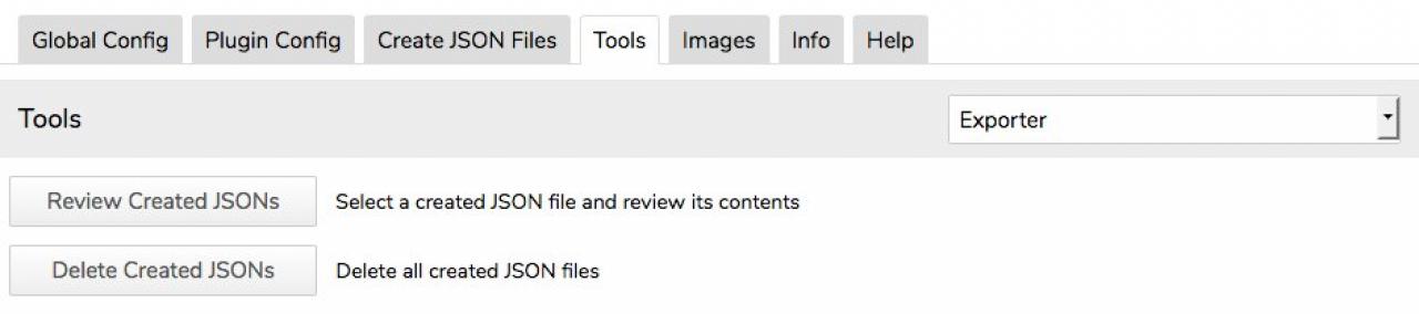 With this tool you can select a created JSON file and its contents will be displayed in a user readable format. Checkout this document's Appendix section for details on the intermediary JSON file format.