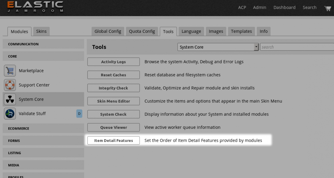 If you want to re-order how those extra module stuff is ordered on the Details page, then you need "Item Detail Features" tool in the ACP.