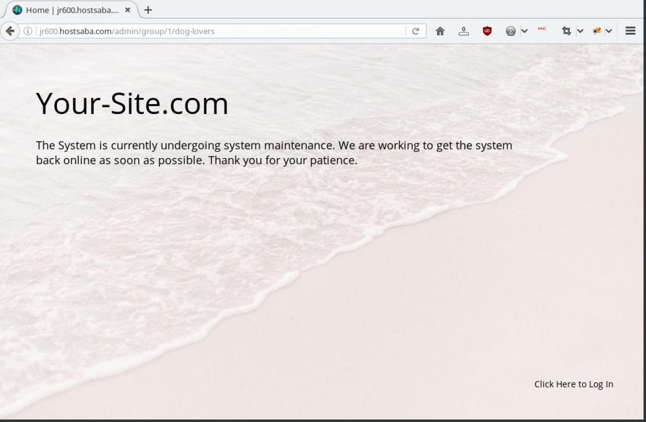 screenshot of the page that is shown to standard level users when the site is in Maintenance Mode