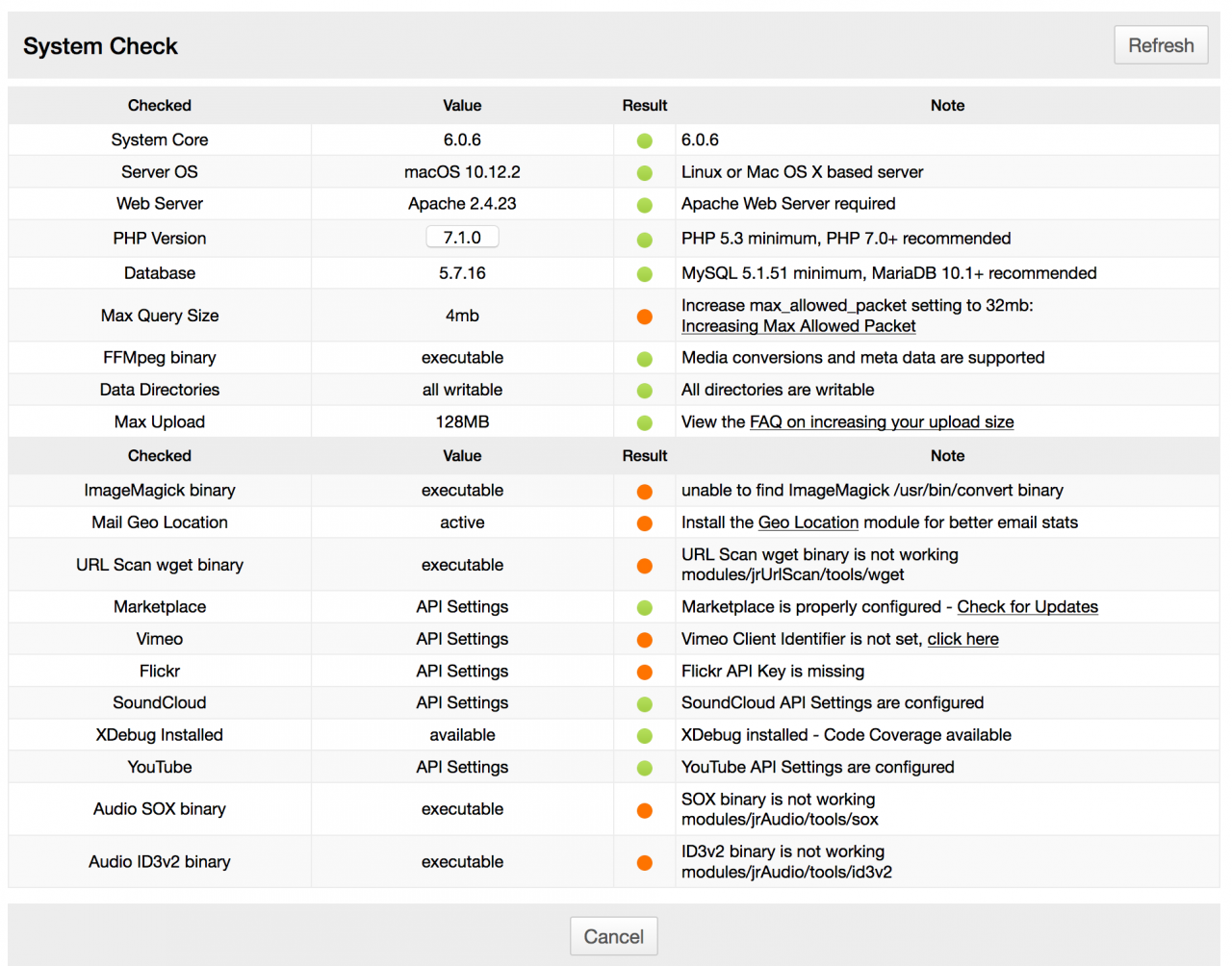 The System Check is a tool found in the core modules that allows you to test whether the Jamroom system is installed properly or not.