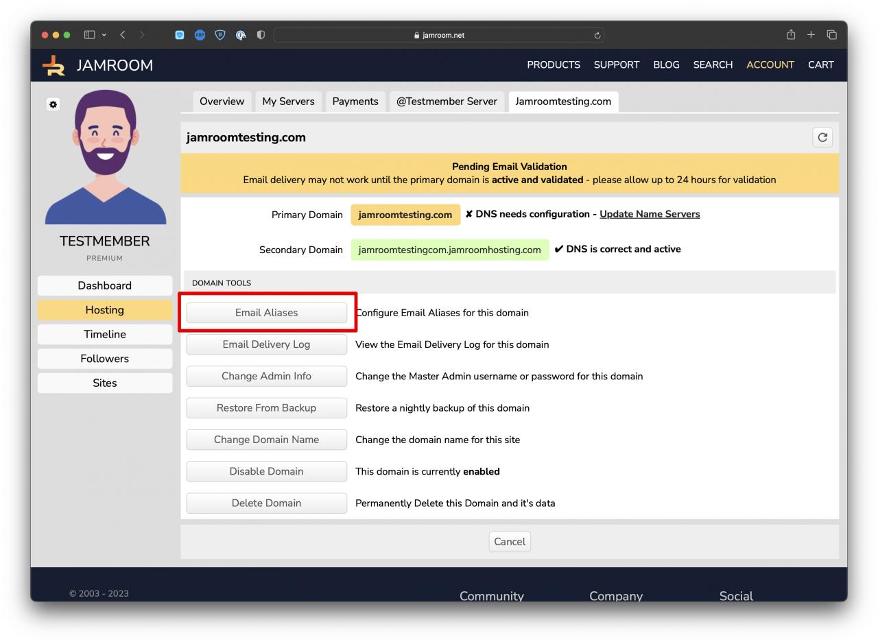 Once you have clicked on the "Configure Email Aliases for your domain" button, you will see the