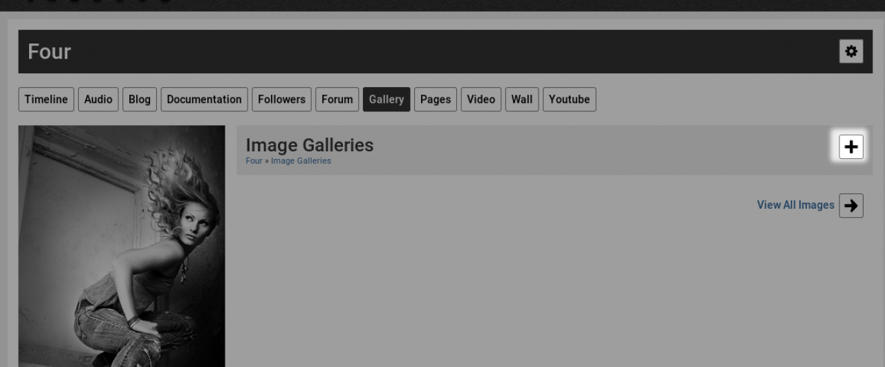 screenshot of the create button in the gallery section of a profile