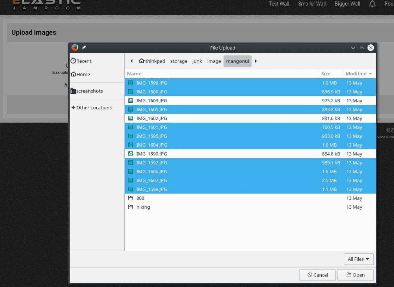 screenshot of multiple images selected to be uploaded