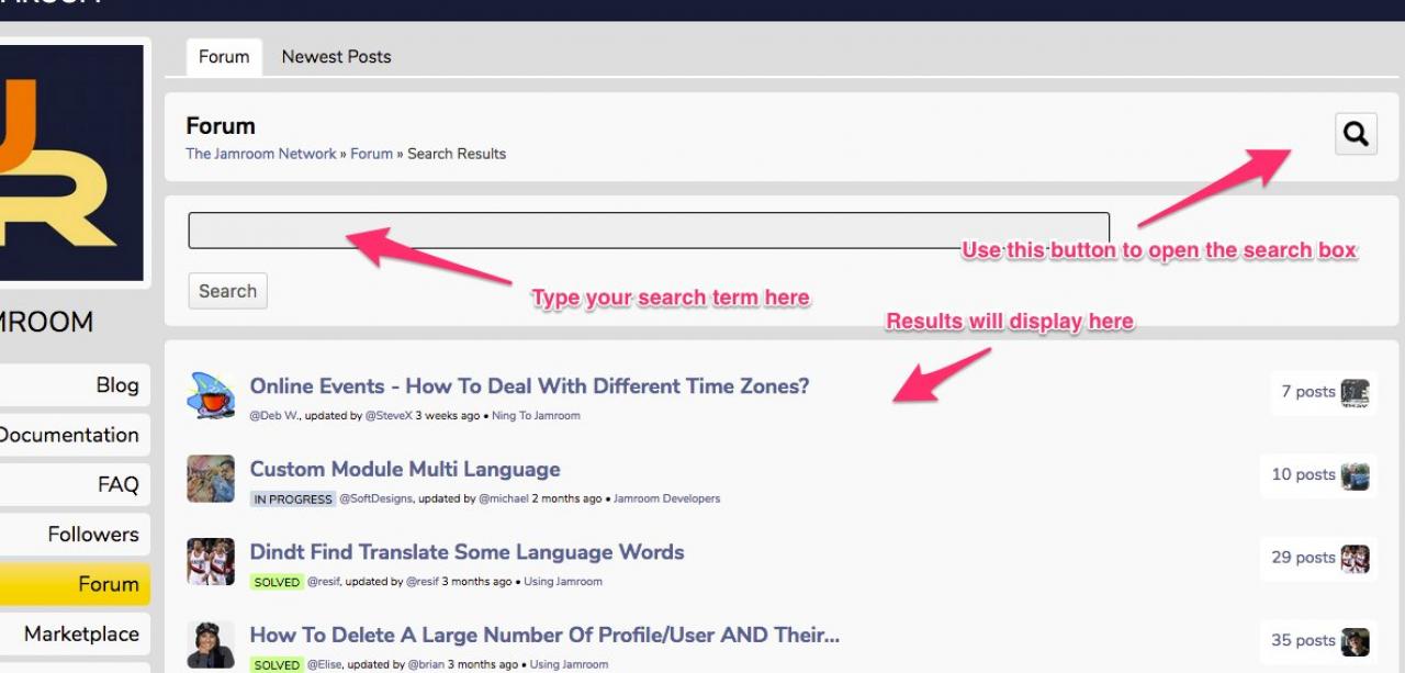 It's a public forum where members of the Jamroom community can ask questions, post info and help each other out.