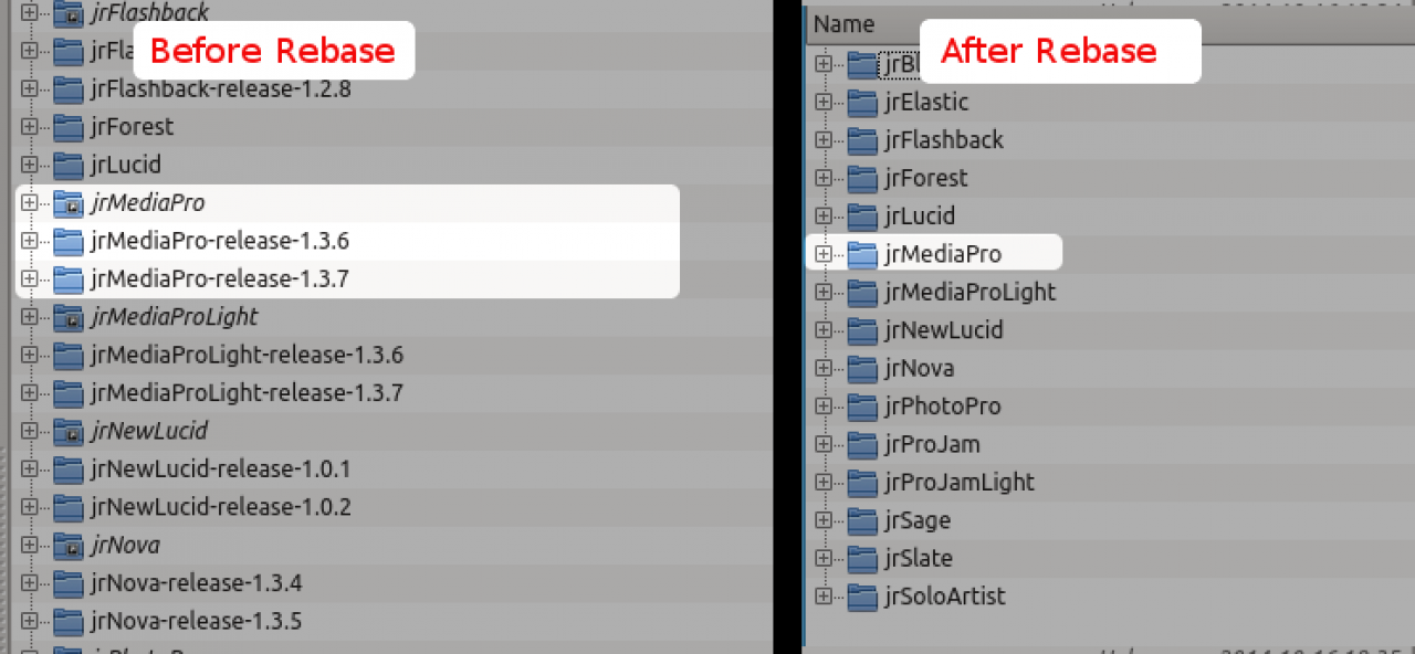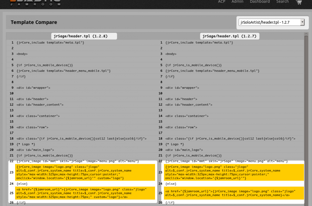 so in this example we have cloned the jrSage skin when it was at version 1.2.7 and version 1.2.8 has just come out. We want to know what changed.