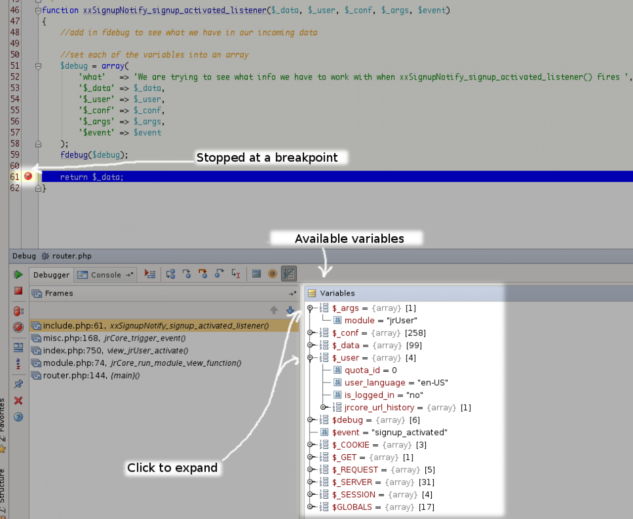 'what' => 'We are trying to see what info we have to work with when xxSignupNotify_signup_activated_listener() fires ',